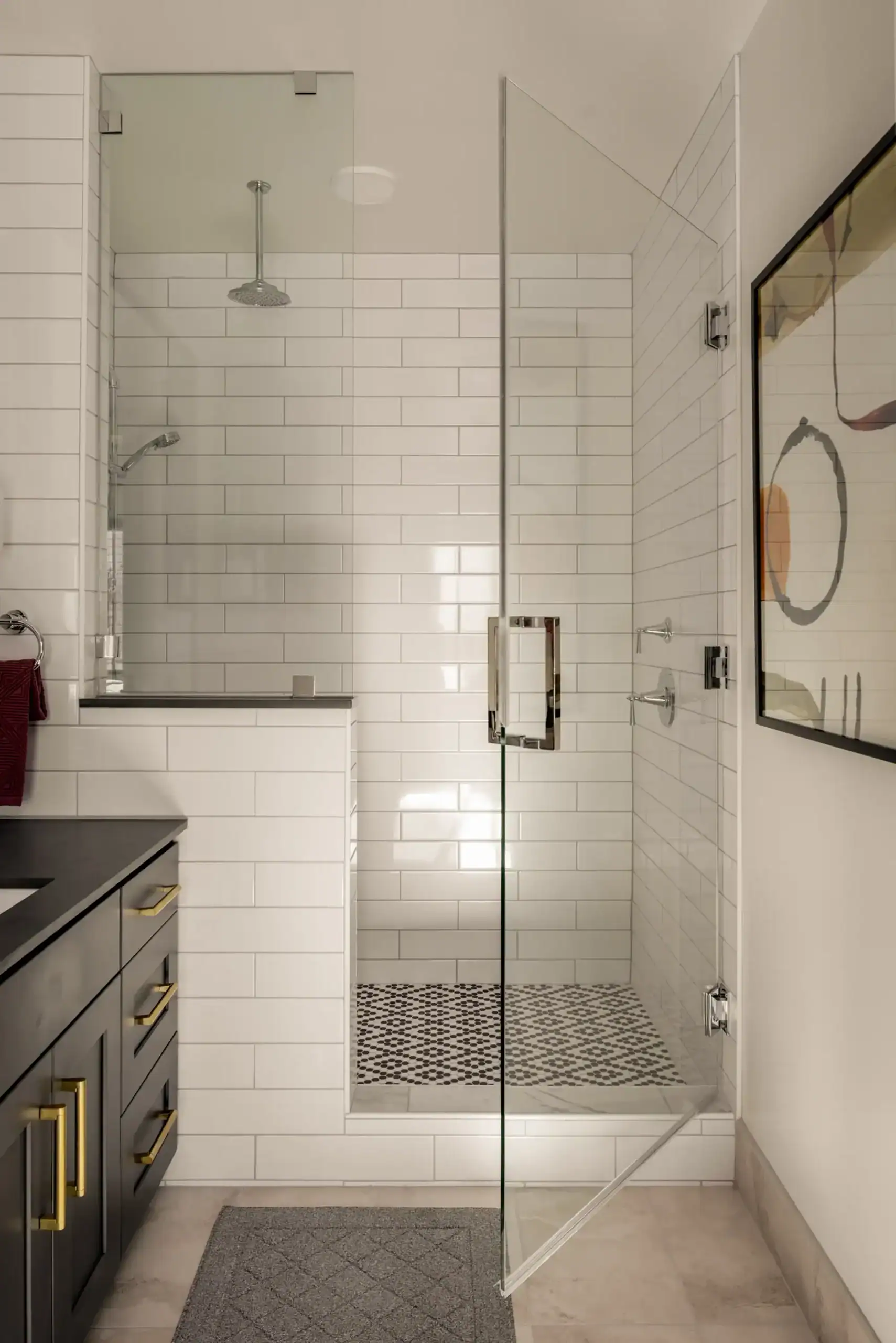 - Frameless Rainfall Shower with Floor to Ceiling Tile and Built-In Bench*